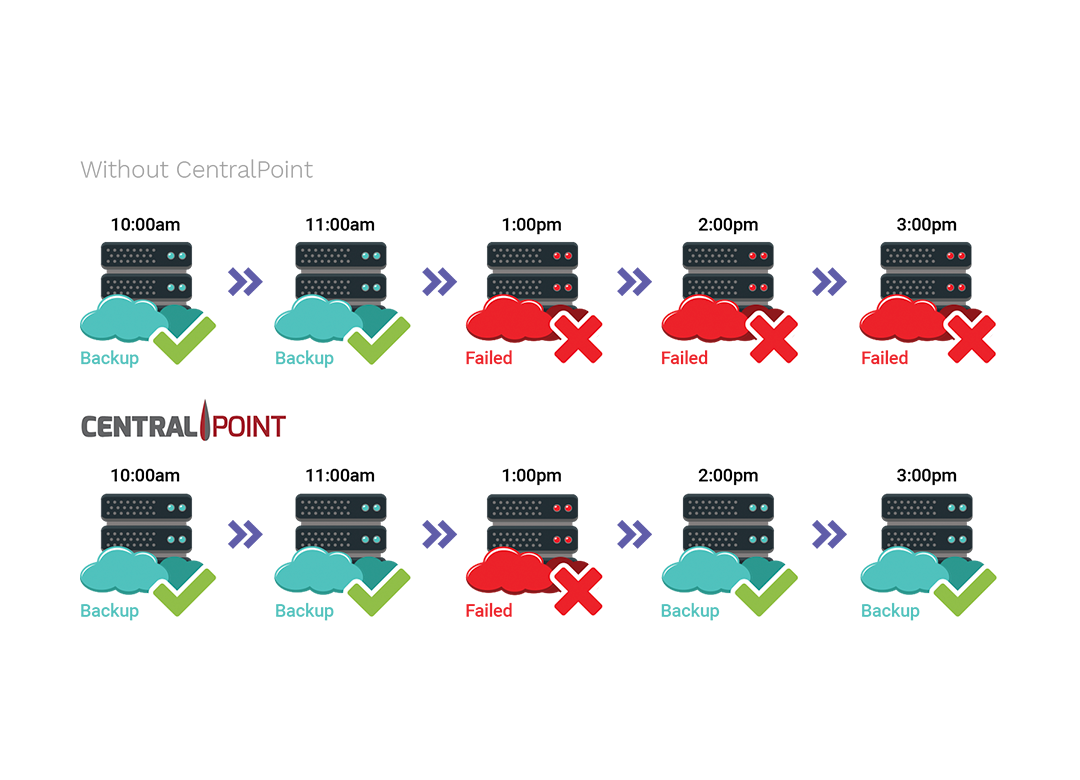How do you know if your backups have been successful? With CentralPoint, any issues that arise from a bad backup process will send an alert. No longer will a bad backup continue without notice. CentralPoint monitors everything from backups to test virtualization.